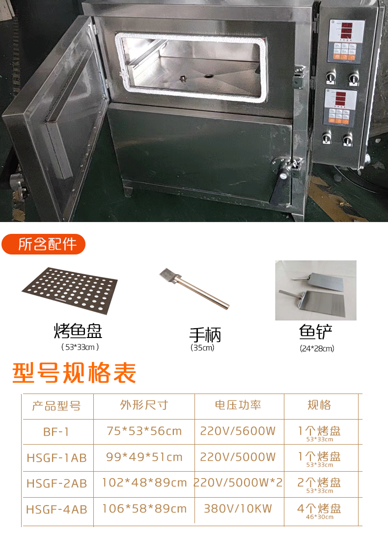 1.減少人工,320度恒溫烤制,避免人工操作的失誤,自動報警系統,減少專門負責烤魚的操作人員/避免人為因素產生的烤制效果